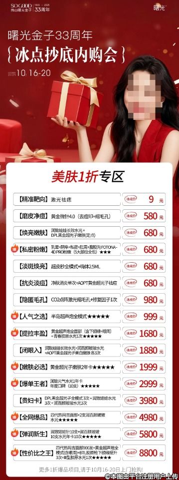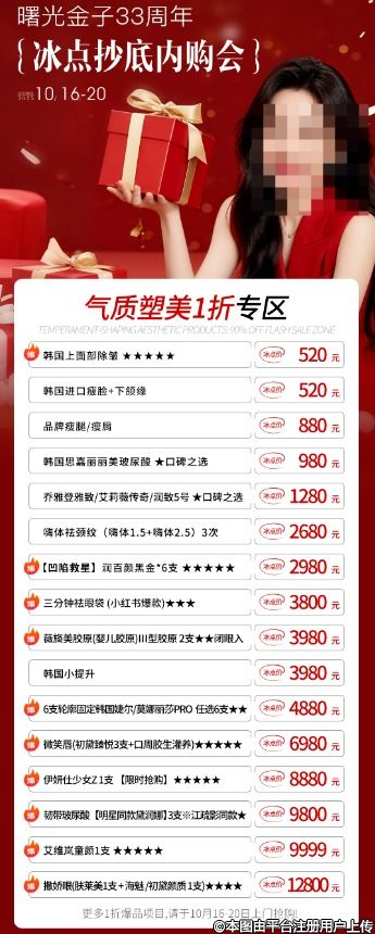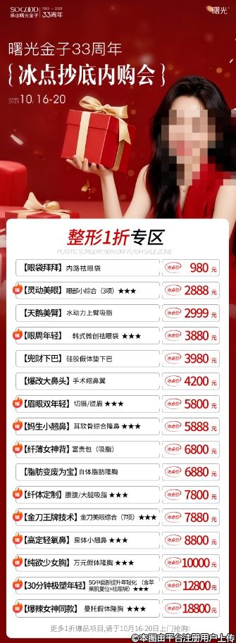 33周年超級(jí)千萬補(bǔ)貼派送,平時(shí)不舍得買的大項(xiàng)目:抗衰年卡、貴婦卡、全臉/形體塑形、眼鼻胸整形,這次直接抄底1折價(jià)拿下!